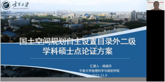 11月9—11日,嗨皮漫画 召开地理学一级学科自主设置目录外二级学科国土空间规划和教育硕士专业学位目录内二级学科学科教学(地理)(全日制)招生硕士点建设方案论证会。学院邀请西北大学李同昇教授、兰州大学杨永春教授、陕西师范大学李君轶教授、西北师范大学赵雪雁教授、中国人民大学郑国教授、江苏师范大学仇方道教授、华中师范大学金贵教授、银川市第三中学张娜校长,以及嗨皮漫画 黄立军教授、王安全教授、王旭明教授参加论证指导。学院院长刘小鹏主持会议。