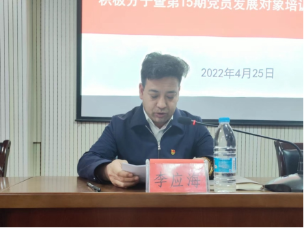 开班式在庄严的国歌声中拉开了序幕。李应海作开班动员讲话,阐述了培训的意义与目的,对积极分子和发展对象提出端正入党动机、提高入党觉悟、提高能力素质、严格基本要求、提高学习效果等要求,并且希望各位学员加强交流、严守纪律。
