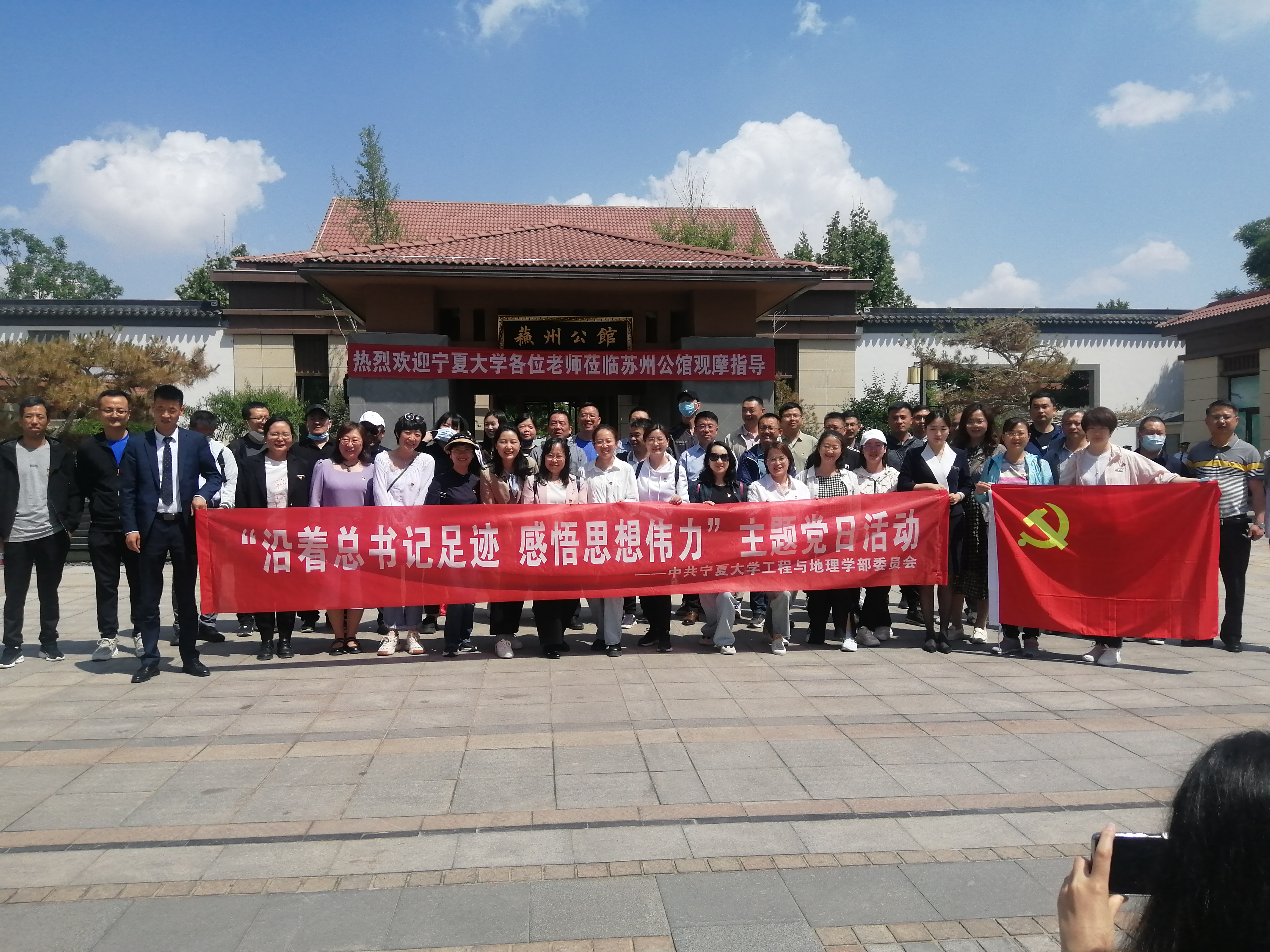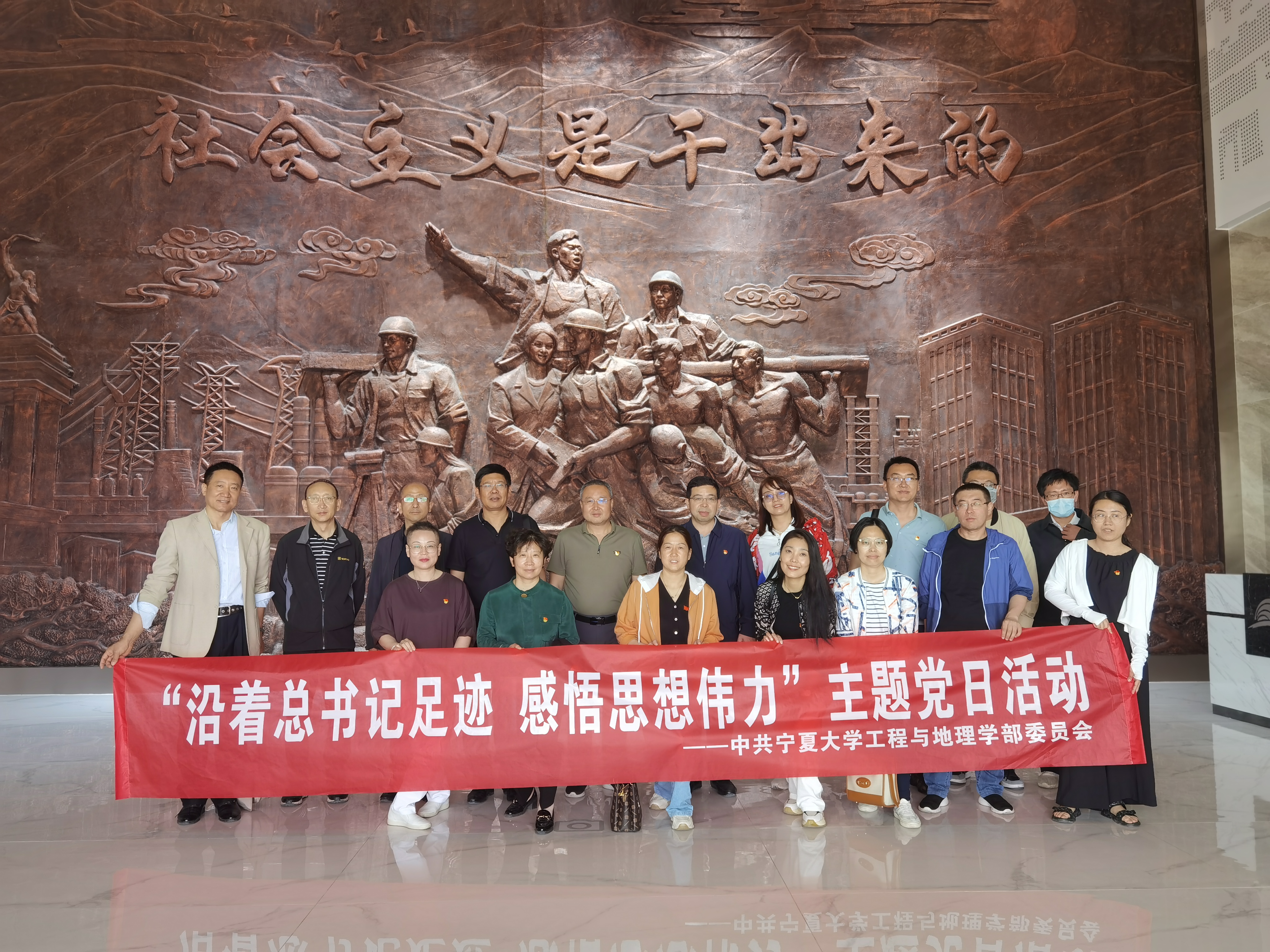 为推进学习贯彻习近平新时代中国特色社会主义思想主题教育走深走实,5月31日下午,工程与地理学部组织学部所有党员教师开展“沿着总书记足迹,感悟思想伟力”主题党日活动。结合学院专业特色设计了三条线路,分别是苏峪口水文站、宁东能源化工基地、贺兰县苏州公馆。
