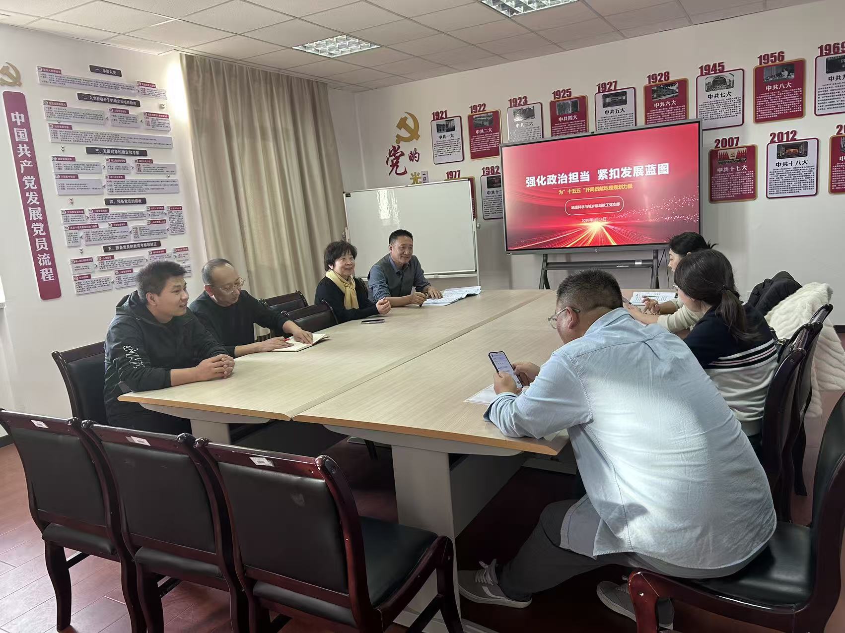 为高质量开好组织生活会和开展民主评议党员工作打牢思想根基�1�14日下午,地理科学与城乡规划教工党支部在德润楼414党建室举行组织生活会会前学习。会议深入学习习近平总书记重要文章《学习好贯彻好党的二十届四中全会精神》、习近平总书记在中共中央政治局民主生活会上的重要讲话精神和自治区党委十三届十二次全会精神,以“强化政治担当,紧扣发展蓝图,为‘十五五’开局贡献专业力量”主题,强化理论武装,统一思想认识�
