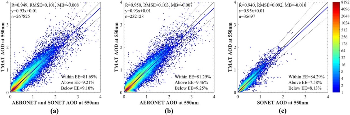 ͼ1.������һվ������֤����550nm���ε�TMAT-AOD����֤���