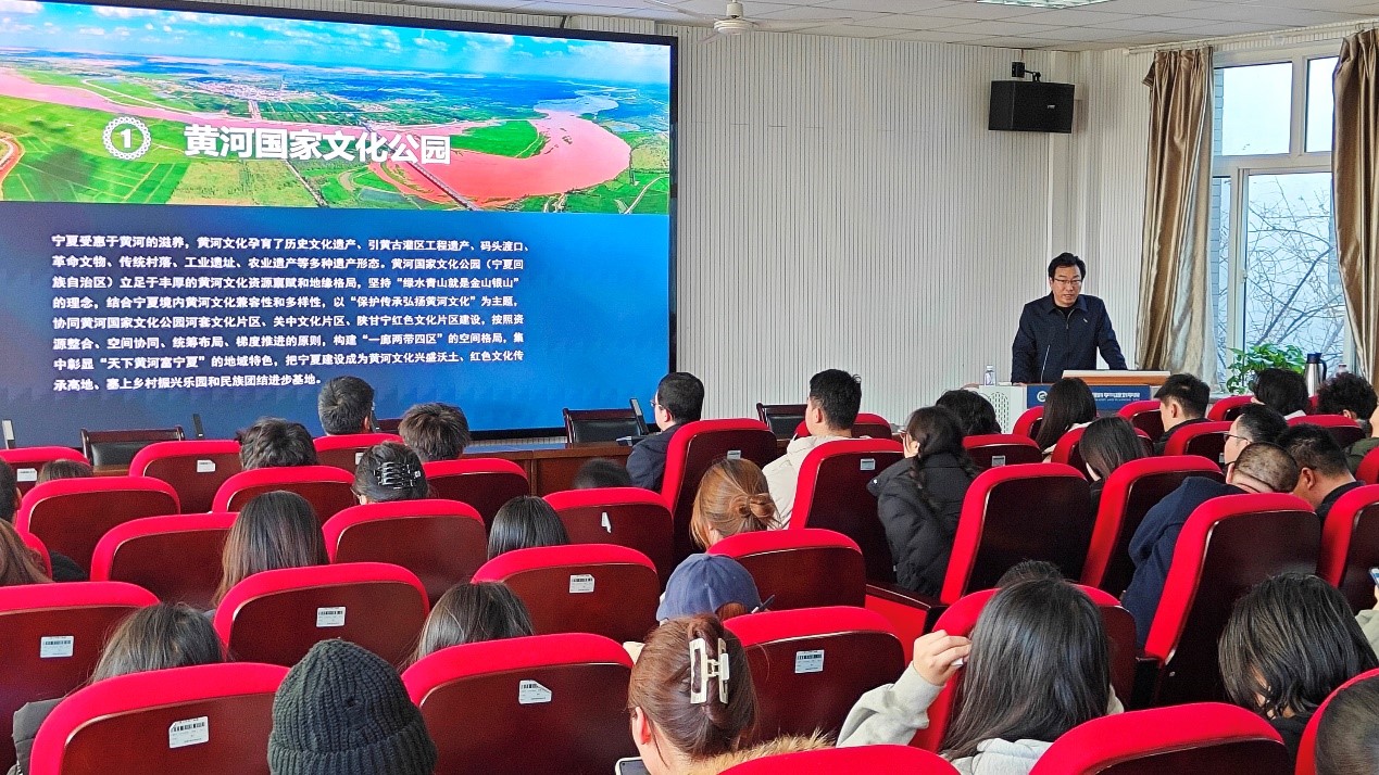 李鹏从黄河国家文化公园、长城国家文化公园、长征国家文化公园三条主线详实介绍了国家文化公园规划和建设(宁夏段)的基本情况。报告以影像方式对宁夏文化村落、生态环境保护、旅游开发、历史遗迹修复、非物质文化遗产保护与传承等方面阐释了国家文化公园建设的文化价值、历史价值和精神内涵。对讲好中国故事、宁夏故事,推动中华优秀传统文化创造性转化和创新性发展提出思考。
