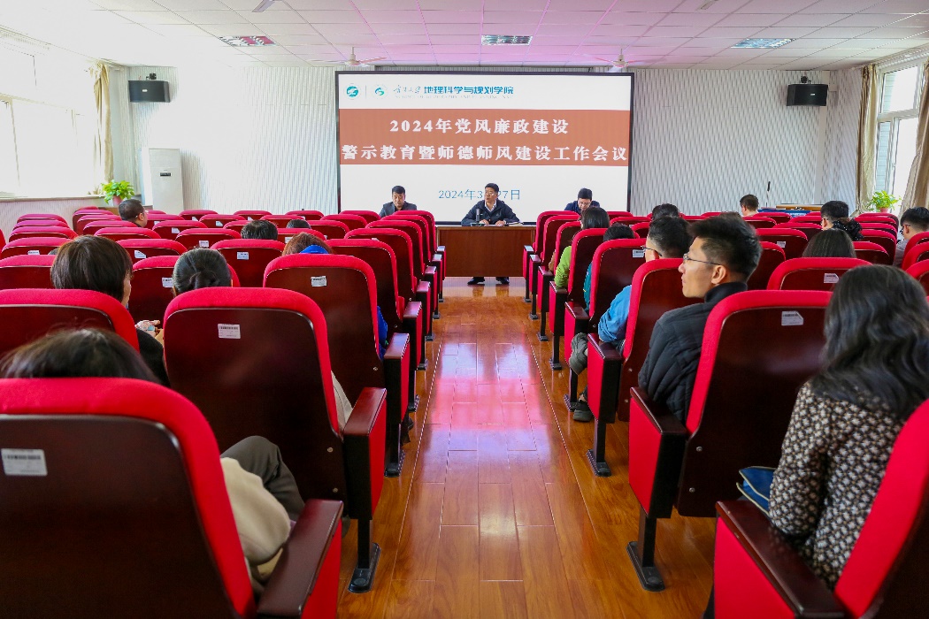 3月27日,学院召开2024年党风廉政建设、警示教育暨师德师风建设工作会议,学习贯彻落实学校2024年全面从严治党暨警示教育会议精神,安排学院2024年党风廉政建设和师德师风建设重点工作。党总支书记陈军胜参加会议并作要求,刘小鹏院长主持会议,院领导和全体教师参加会议。
