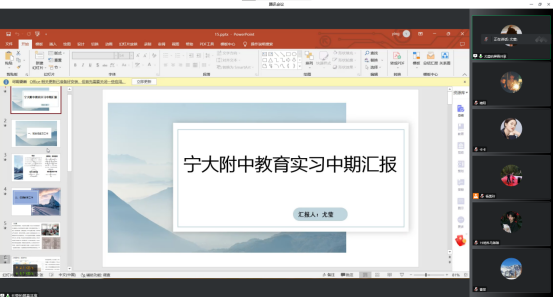 开展地理科学(教师教育)专业教育实习期中检查汇报会,由系主任杨美玲主持,副院长郑芳、教科办主任常虹及带队教师参与了此次活动。