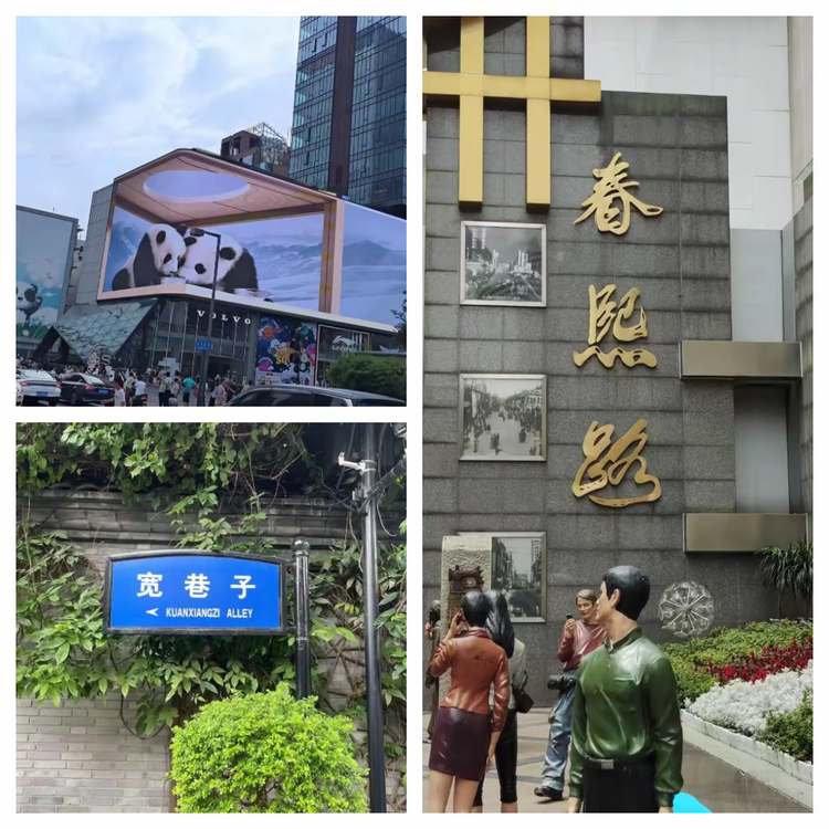 7月15日与16日,实习团队到达成都,一起了解这座位于四川盆地西部、成都平原腹地、古蜀文明重要发源地的重要历史文化名城。成都气候宜人,亚热带季风性湿润气候与岷江的丰富水资源,使得这片土地肥沃,孕育了丰富的自然环境资源和深厚的历史文化。成都是成渝经济圈的核心城市,也是国家大力发展西部的重要城市。在成都,师生共同前往四川博物馆、成都规划馆、春熙路、宽窄巷子、太古里等地进行了实地参观和调研。同学们发现成都路网规则清晰,道路层级一目了然,呈现出网状加放射状的独特布局,这种放射状道路网有利于市中心对外联系,不易造成市中心交通拥堵。成都的绿地公园点缀在城市的各个角落,让同学们感受到成都生态规划与城市规划的相互融合与协调。对成都城市规划的认识和了解,使同学们将地理规划理论与城市规划实际联系起来,切身感受到具有区域特色的成都市的典型城市规划格局。
