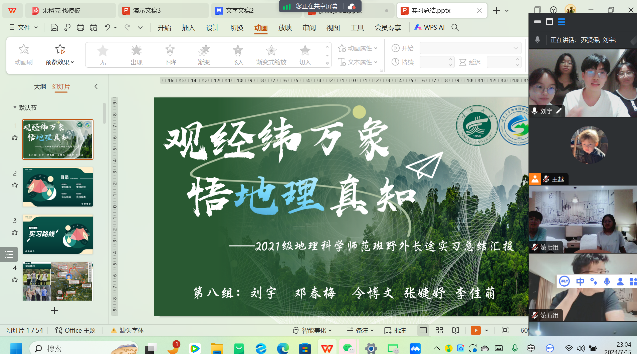 7月18日,2021级地理科学(师范)专业的学子们圆满完成了历时16天的长途综合野外实习。由于有部分学生已返回家乡,实习总结大会通过腾讯会议召开。线上进行实习总结汇报,旨在回顾复盘整个实习历程,总结凝练此次实习实践的学习成果。