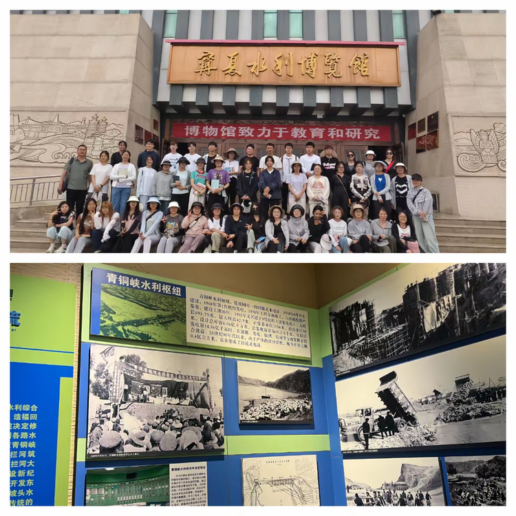 7月6日,实习师生共赴青铜峡黄河大峡谷,参观学习青铜峡水利枢纽工程。在宁夏水利博物馆同学们了解了宁夏防洪治沙的智慧及青铜峡水利枢纽对宁夏的贡献。