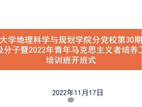 分党校第三十期入党积极分子暨2022年青年马克思主义者培养工程培训班开班式在线上举行。学院党委书记陈军胜参加开班式并作开班第一讲,副书记李应海作动员讲话,学办主任常瑞敏主持开班式,学院第三十期入党积极分子、第十六期发展对象培训学员及2022年青年马克思主义者参加开班式。