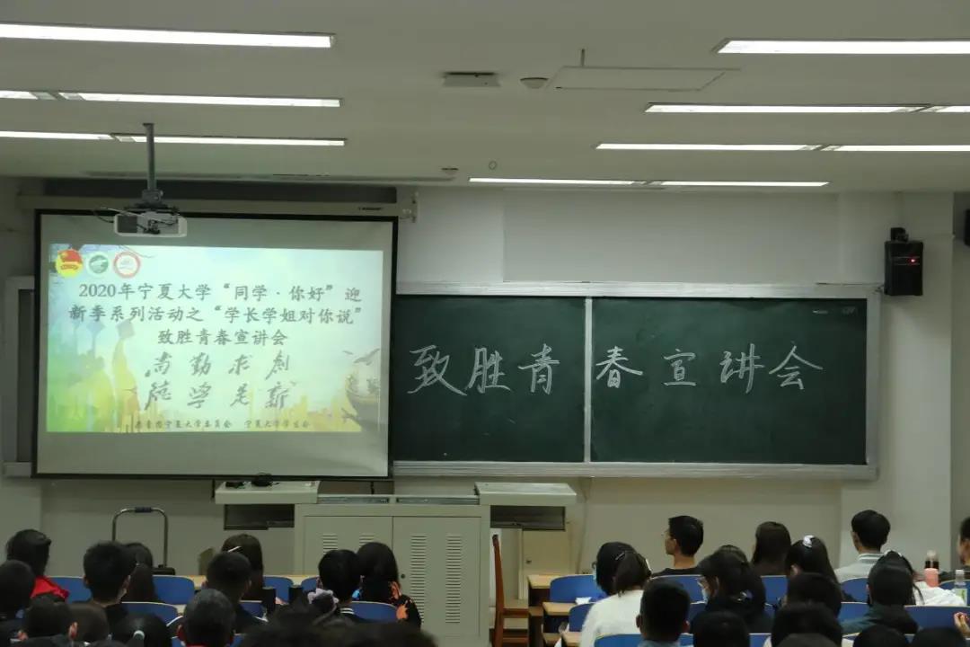 校团委、校学生会组织联合各学院团委学生会举办“同学·你好”迎新季系列活动之“学长学姐对你说”致胜青春宣讲会主题宣讲会。资源环境学院分会于2020年10月19日19:00在文萃一教422顺利召开。