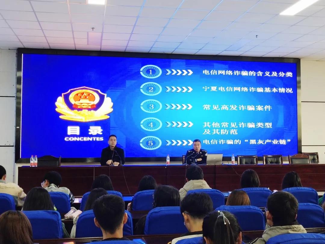在讲座中,主讲人从电信网络诈骗的含义和分类、宁夏电信网络诈骗基本情况、常见高发诈骗案件、其他常见诈骗类型及其防范、电信诈骗的“黑灰产业链”五个方面展开讲解。此次讲座目的是让同学们注意防范公民个人信息安全,预防被害人因经不住他人虚构的利益诱惑,从而产生财产损失,告诫同学们严密保管个人信息及证件,若贷款需通过正规手续合法途径到银行办理。大学生应树立正确的消费观,注意网络消费安全,保护好个人财产。网络具有虚幻性,网络交友要谨慎,不义之财不可得,切莫小便宜吃大亏。若发生网络诈骗事件,不要慌张,要马上核实真实情况并选择报警。对此杨警长强调,最简单有效的办法就是:置之不理。