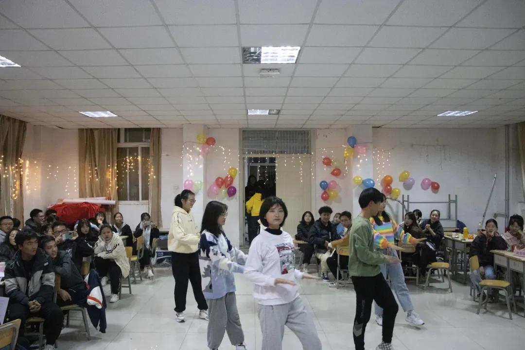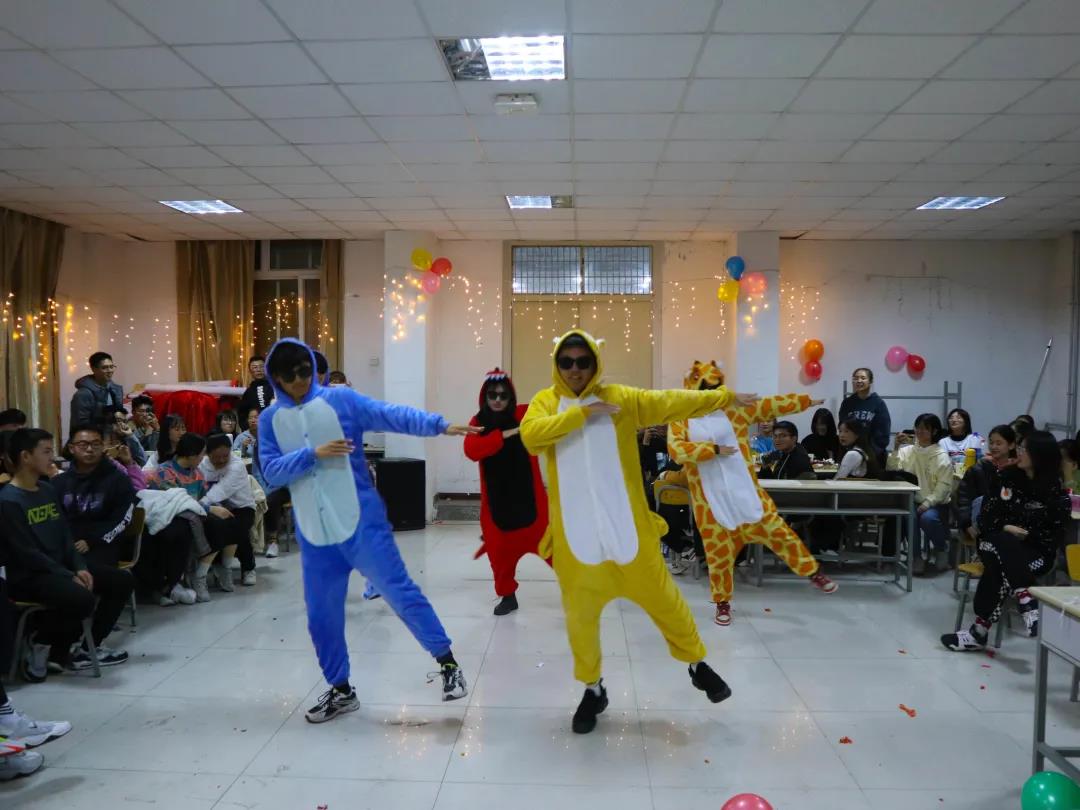 文体部带来的《人间富贵花之动感光波舞》《歌曲老年团体合唱串烧》,充分展现了文体部多才多艺的实力和风采。当然,就业及资助服务部也绝不甘落后,精彩的螃蟹舞让同学们眼前一亮。压轴出场的实践部化身为“一群小动物”,不同寻常的歌伴舞《乐舞一派》给大家带来了全新的观感体验。