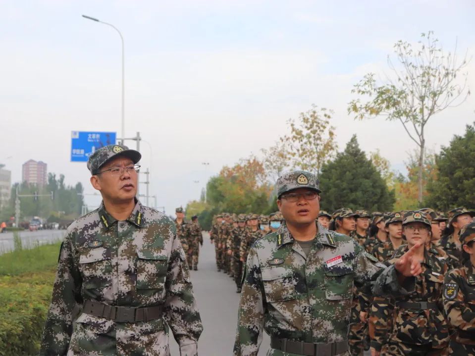二营三连军训团由书记陈军胜、副书记尤桦和辅导员常瑞敏带领参训全体学员参加。